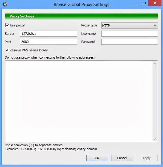 Setelah itu pada Proxy Servers isilah sesuai dengan apa yang telah kalian isi di Software Bitvise pada menu Services. (Contohnya saya tadi menggunakan 127.0.0.1 dengan Port 1082.